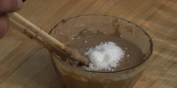 2、在调好的芝麻酱里面加入少量的食盐和适量的白砂糖,搅匀备用。