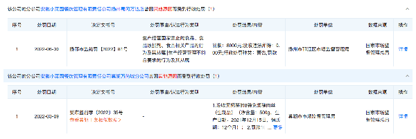 不过据天眼查显示,该公司的多家门店在2022年曾因为食品安全问题被给予行政处罚。