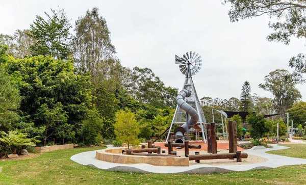 乡村天堂公园最近进行了一场耗资 280 万澳元的重建,将其转变为腹地避风港。重建的核心包括一个 11.5 米高的冒险游乐场,里面有一个巨型滑梯、水箱隧道和吊桥。