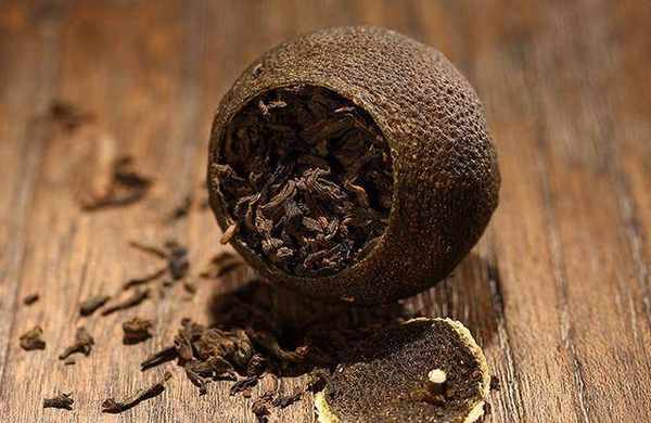 陈皮和普洱均为养生保健佳品,两者搭配成陈皮普洱茶,保健功效更好。普洱茶中的茶多酚在氧化酶的作用下发生酶促氧化反应,含量减少,对胃部的刺激性就随之减小了。陈皮能健脾开胃,适用于脾胃虚弱、饮食减少、消化不良、大便泄泻等症。