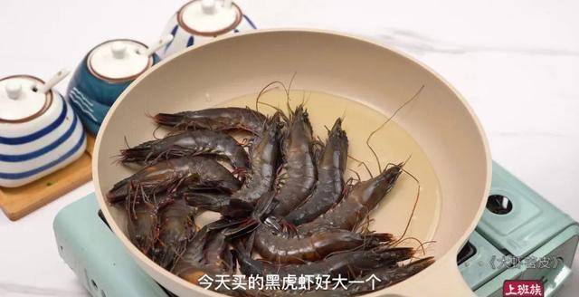 今天买的黑虎虾,好大一只。
