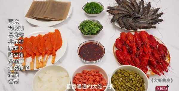 小龙虾、酸豆角、油泼辣子、葱花