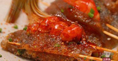 最后用签子串起来,刷上辣油,撒上葱花,这感觉瞬间到位~