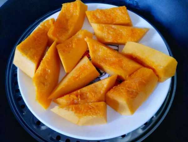 制作过程:步骤1、南瓜1块削皮、南瓜瓤,把南瓜切小块,往锅里加水,等把水煮开了,隔着水把切开的南瓜块儿放进去蒸十五分钟;