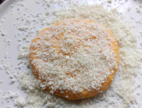3、要的是南瓜饼表皮酥脆,裹面包糠,势在必行,但是南瓜饼若直接用面包糠包裹,则易脱落,所以提前用鸡蛋液包好,炸制南瓜饼时,整个过程都要用小火,忌外熟里生,不希望油太多,可选煎煮。