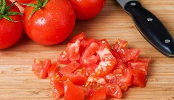 第一步:拿两个大小适中都西红柿用清水清洗干净,再用刀将西红柿的蒂去掉,用刀在西红柿的顶部划出一个十字花来,将西红柿放到开水当中烫大约十分钟左右,等到西红柿肉和皮自然分开之后用手将西红柿皮剥掉,用刀将它切成小块的形状。