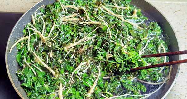 1、荠菜去干枯枯叶,放入淡盐水中浸泡20分钟,再用清水洗净数次,以免沉淀物影响口感。荠菜虽好挖,采菜却费时费力。这是耐心的工作。拔毛洗净后会更好吃!