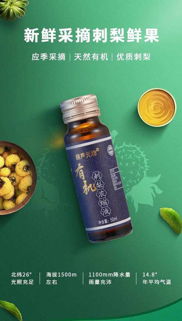 也正是因为刺梨的好处被越来越多人所研究证实,贵州省近些年在刺梨产业上投入了不小的精力,同时与各大相关部门合作,把刺梨产业打造成为生态、健康、时尚的新产业。也正是有了政策的加持,葫芦元坊也顺势推出了有机刺梨浓缩液。