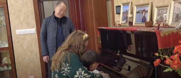 米粒在叔叔阿姨家弹钢琴