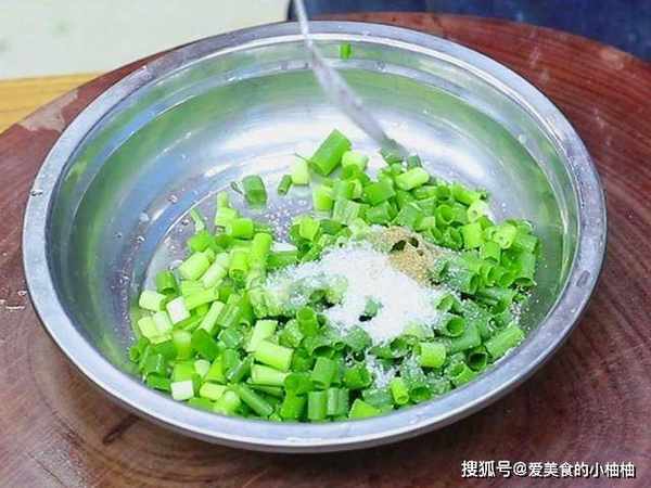 几根洗净的小葱切成葱花放在盆中,再加入一些芝麻香油、食盐、味精、胡椒粉、十三香搅拌均匀腌制10分钟。