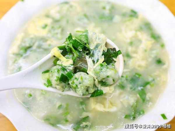 锅内烧水,水微微烧开的时候转小火,抓一把馅料从虎口挤成丸子,用小勺挖入锅中。丸子全部下完以后稍微调大点火力,继续煮制定型,丸子全部飘起来以后,把刚刚的面盆用水涮一下倒入锅中,这样汤会更加香浓。