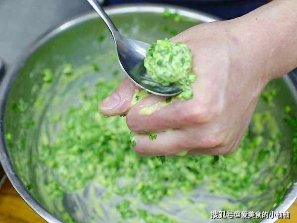 一把韭菜切成碎末,加入一个鸡蛋、少许食盐抓拌均匀,然后放入一把面粉,抓揉出韭菜汁和面粉融合在一起,能挤成丸子即可。