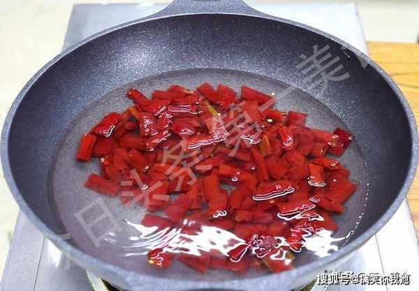 切成段,用70度左右的热水泡上半个小时以上,目的是把辣椒泡软,同时去除一部分燥性和辣味,辣椒泡好以后倒出来用清水冲洗一下,把里面的辣椒籽筛出去。