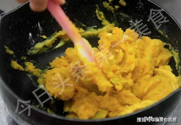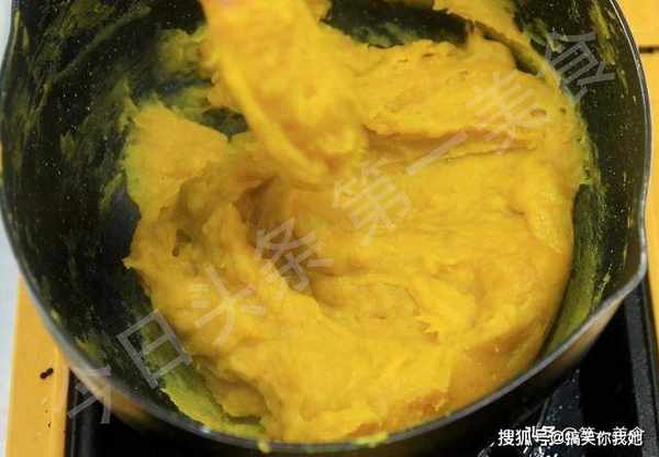 增加南瓜泥的甜度,把南瓜碾压成泥,加入