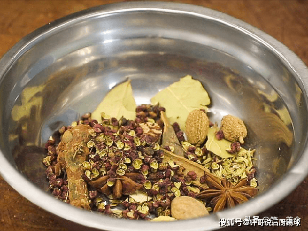 两八角、几片香叶、 一小撮红麻椒就行了。