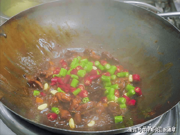 最后把青红椒蒜子倒进去,大火一加持把香味炝出来,咱这汁浓肉瓷实干香有嚼头全国第一炒鸡的临沂炒鸡就搞定了。