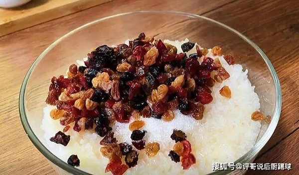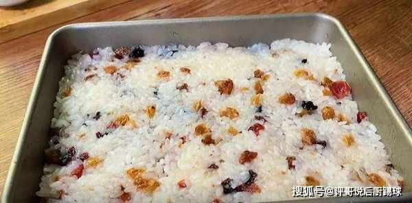 2、泡软的黄米和糯米。分别将它们上锅煮熟。在煮熟的糯米中放一些砂糖,葡萄干、蔓越莓等,然后搅拌均匀。