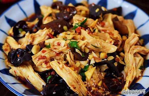 材料:腐竹5根,木耳10克,蒜3瓣,葱适量,熟白芝麻适量,花椒2克,生抽3勺,陈醋2勺,白糖半勺,辣椒面1勺,食用油适量