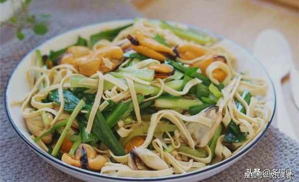 豆腐皮中含有大量的钙质,很容易被人体吸收和利用,能起到良好的补钙作用。海虹肉被称为海中鸡蛋,这几样搭配起来一起炒,荤素搭配营养丰富