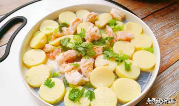 6、再加入盐和白胡椒粉调味,最后放入虾仁炖1分钟左右,撒上香菜和葱花就可以出锅了。
