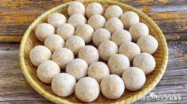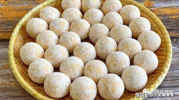 6、做好的丸子,还要给它撒一层糯米粉,这是为了避免粘连在一起。