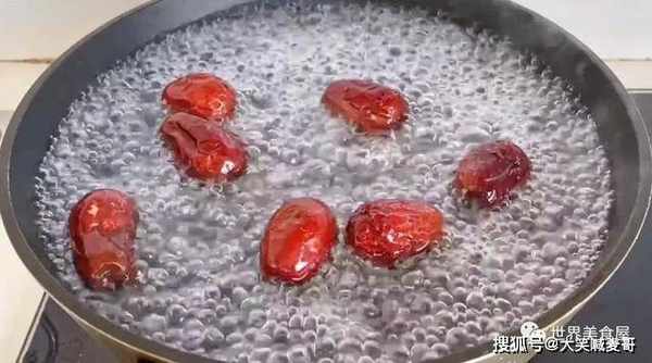 7、接下来,烧开一锅热水,放入红枣,砂糖进去煮沸。