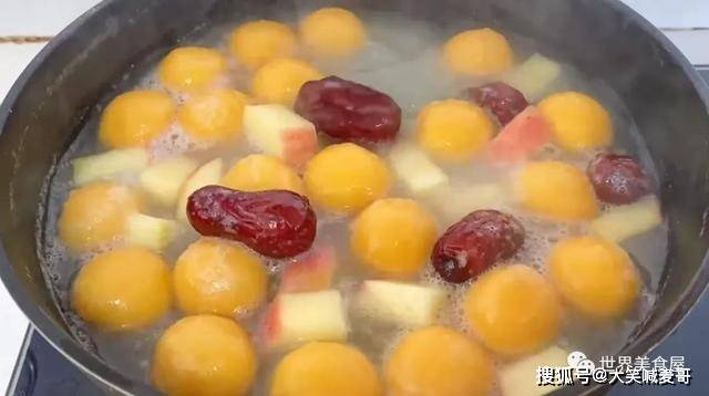 10、这时候,在锅中放入切块的苹果,增加香甜味,吃起来有苹果的清香。
