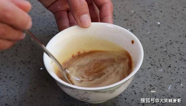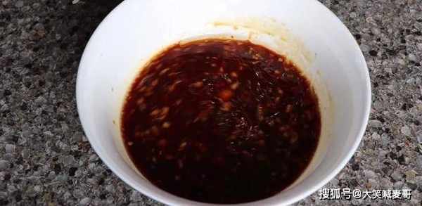 3.下面调一个料汁,依次往里加盐焗鸡粉、生抽、米酒、花生油、蚝油、清水,拌匀。