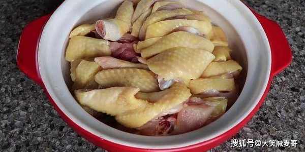 1.鸡肉洗净后斩成小块,全部斩好整齐摆入砂锅里。