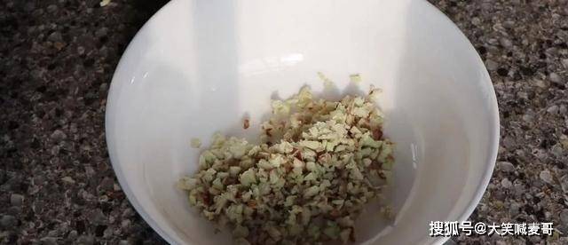 2.沙姜洗净后用刀拍扁再剁碎,装入碗中。