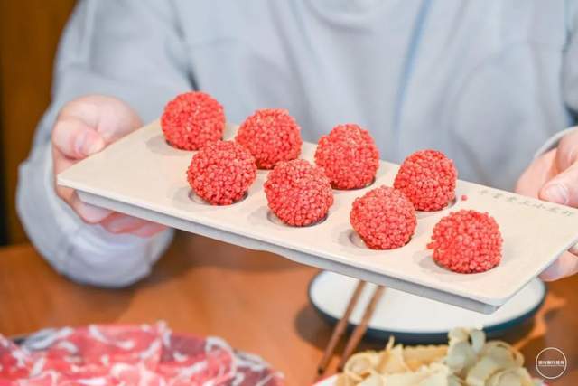 荔枝虾球,也是一道很特别的菜品,虾肉丸质地,荔枝造型,入口鲜香,涮锅里被牛肉汤底加持下更是迷人。