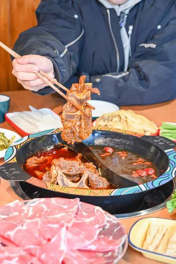 冒着热气的牛肉香味扑鼻,大块的牛骨头,和上面纹理鲜明的牛肉,软烂透明的牛筋骨肉,入口满满牛肉的鲜美和汤汁的醇厚,鲜、香、咸、辣,过瘾不腻,入味,而且当中还有配菜。大口吃肉,直接上手,和朋友家人,围坐一锅,吃的酣畅淋漓,绝对肆意。