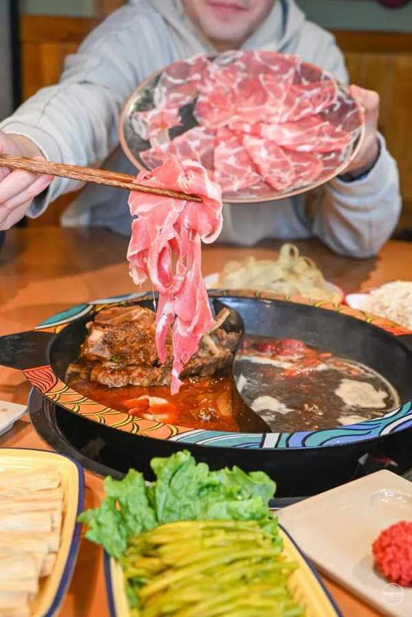 而且精华就在这个汤底里。原汤才是真的迷人,醇厚浓郁,里面涮上店里各种菜品,盐池羊肉、一品牛肉都是必须,哪怕是寻常的火锅菜,在这一锅里,浸满牛肉汤汁都焕发出独特的味道。