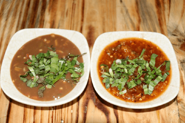 美食,最重要的就是味道和火候,烧烤也一样。每天下午2:00到6:00,主要是烧烤的前期准备工作,买菜、切菜、串串……部分用食盐、辣椒、花椒等精心调制的佐料提前进行腌制,确保“入味”,再用草果粉、花椒粉、辣椒粉等现炒的一盆烧烤料备用。番绍权的烧烤架上,整齐排列着客人挑选好的烤串,刷油、烧烤、刷自制烧烤料,中途翻面重复相同动作,动作行云流水、一气呵成。不一会儿就弥漫出诱人的香气,几分钟后,色泽金黄油亮的烤串便出炉了,火候恰到好处、不焦不糊,老板娘尹云洁更是动作麻利地退签装盘,将外皮焦脆、内里松软,麻辣鲜香的烤串端给顾客……再辅以用煮熟剁碎的“洋酸茄”、炮制的胡辣子、现烧的生辣椒和用芒市的涮涮辣、折耳根、老缅芫荽、腌菜膏等制作的两个秘制蘸料,简直绝配。