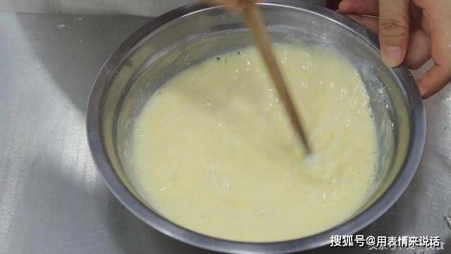 1.准备一个小盆, 打入两个鸡蛋。加入食盐2克, 喜欢吃甜的可以加入白糖10克,加入面粉50克,加入180毫升的纯牛奶一包,用筷子搅匀。搅拌成糊状,能扯起丝就行。