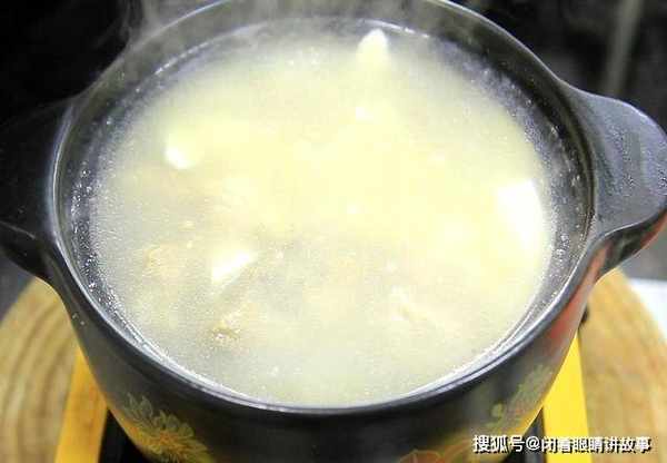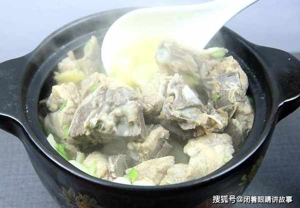5.20分钟以后把骨头捞出来放入砂锅中,再倒入汤汁,放入山药,开小火继续炖煮20分钟。