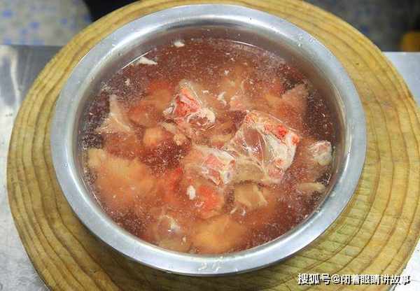 1.准备一块猪大骨,用砍刀砍成小块放入盆中,倒入适量的清水,加入一勺食盐和适量的小苏打,用手抓匀浸泡十分钟,食盐和小苏打都能快速地去除骨头的血水,起到去腥的作用。