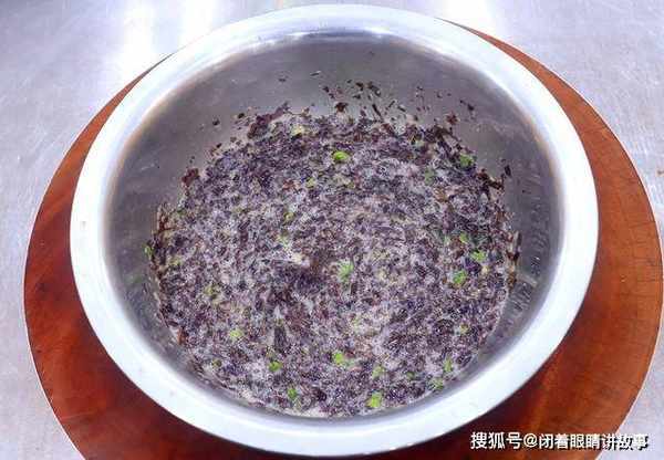 1.准备一把紫菜,用清水泡开,把上面的灰尘和杂质洗干净,用力挤出里面的水分,再把紫菜切碎一些放入盆中。