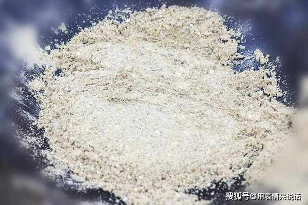 把锅烧热、不用放油,直接倒入面粉,开小火翻炒出水气,面粉炒香、微微变黄以后就熟了,把它盛出来备用。