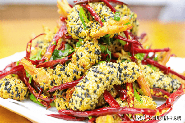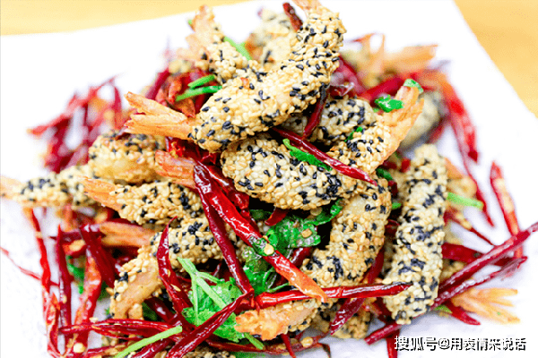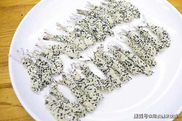 准备适量的白芝麻和黑芝麻混合均匀,碗中打入两个鸡蛋,搅拌打散成蛋液,把腌好的虾仁先沾一层淀粉,再裹上蛋液,最后沾满芝麻备用。另外准备适量的干辣椒、剪成细丝,再切点香菜段备用。