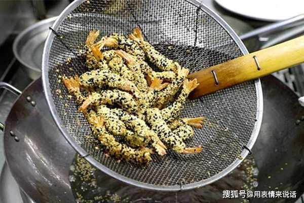 锅内烧油,油温四成热时把虾仁依次放进去,小火慢慢炸,虾仁定型,炸成金黄色时捞出控油。