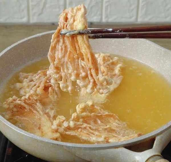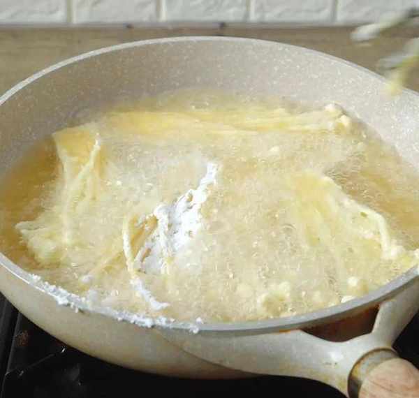 等到油温七成热的时候,下锅炸。