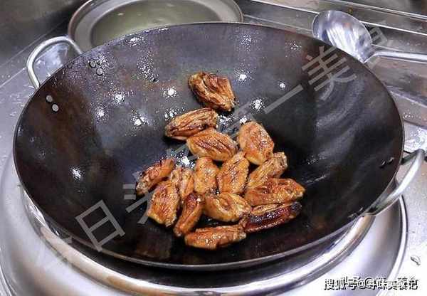 锅内烧油,充分滑锅以后倒出热油加入凉油,热锅凉油能防止煎鸡翅时粘锅,把鸡翅依次放入锅中,轻轻晃动锅防止糊底,全程用小火,大约煎3分钟,鸡翅两面都煎成金黄色时,把锅中的鸡油倒出来减少油腻感。