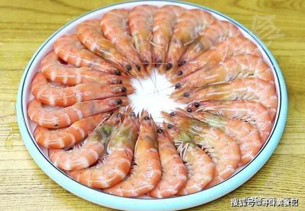 闻到浓郁的葱香味以后把鲜虾倒入锅中,下锅以后不需要煮太久,开锅以后再停留个三四秒钟即可倒出,这时候的虾肉最为鲜嫩,不需要放任何调料,尤其是食盐,盐水煮虾容易流失水分,导致虾肉不够滑嫩,最后把葱段和姜片挑出来,把大虾均匀摆放在盘中。