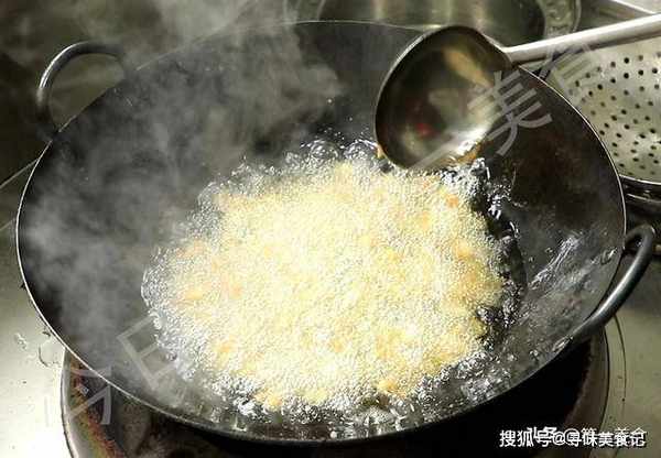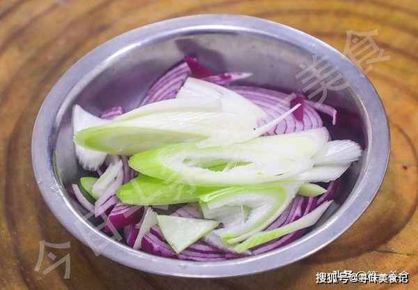锅中多放一些油,油烧热以后倒入切好的葱片、洋葱,开小火慢慢煸炒,把它们的香味炒出来,炒至洋葱变软、葱花呈金黄色时捞出,倒在姜蒜末上激出香味,加入