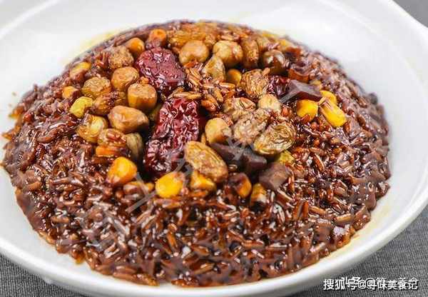 40分钟以后把糯米取出,倒扣在盘子里,一道香甜软糯的红糖八宝饭就做好了。