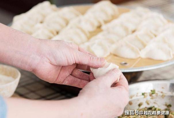 7、半小时以后,将面团分成小剂子,擀薄片。随后取适量肉馅,开始包饺子。煮饺子的过程中,锅里可以放入一勺油,这样煮出来的饺子香味更浓郁,不容易粘连。