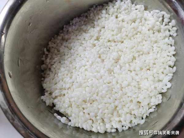 1、准备适量的糯米,放入清水中,浸泡2个小时左右,将糯米泡胀,这样在煮的时候,可以缩短一部分时间,长粒圆粒都可以。