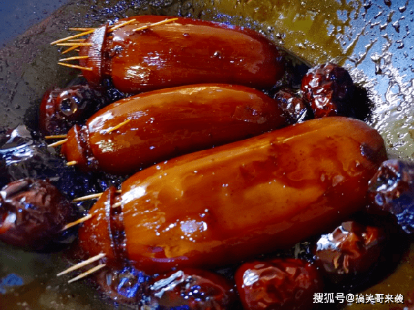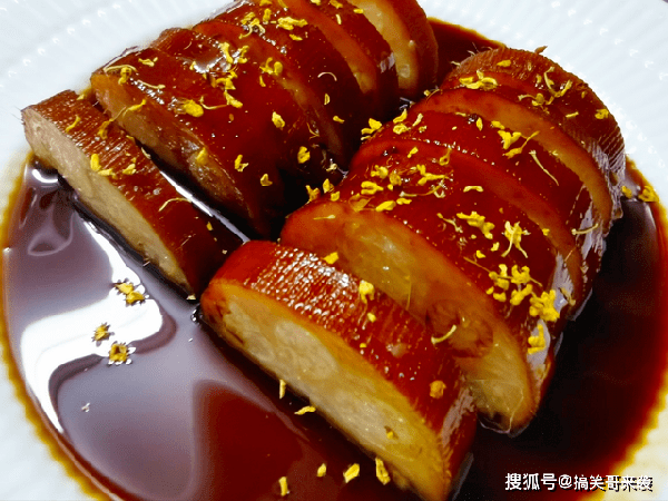 9、如果感觉汤汁过多,也可以倒入炒锅中,用大火收干汁水,最后变得黏乎乎的,就可以了,切片上桌。