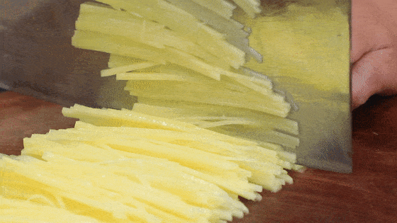 1.土豆丝要用刀切,保持粗细均匀,不要用擦丝工具